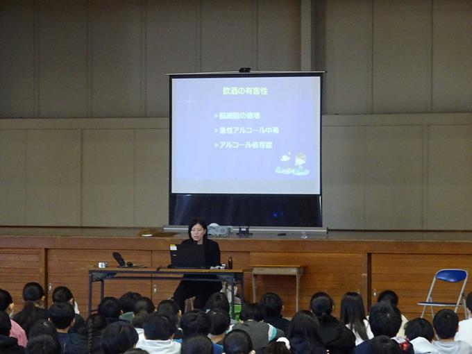 近年問題になっている「オーバードーズ」についてや、授業でも取り扱うシンナーについて、依存度の高いタバコやアルコールについて等、幅広く教えていただきました。また、薬物やタバコ・アルコールを摂取するように勧められたときの断り方について、ロールプレイングを通して学びました。