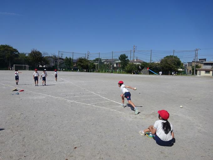 9月下旬から体力テストの測定が始まっています。低学年は高学年にお手伝いをしてもらって測定をします。