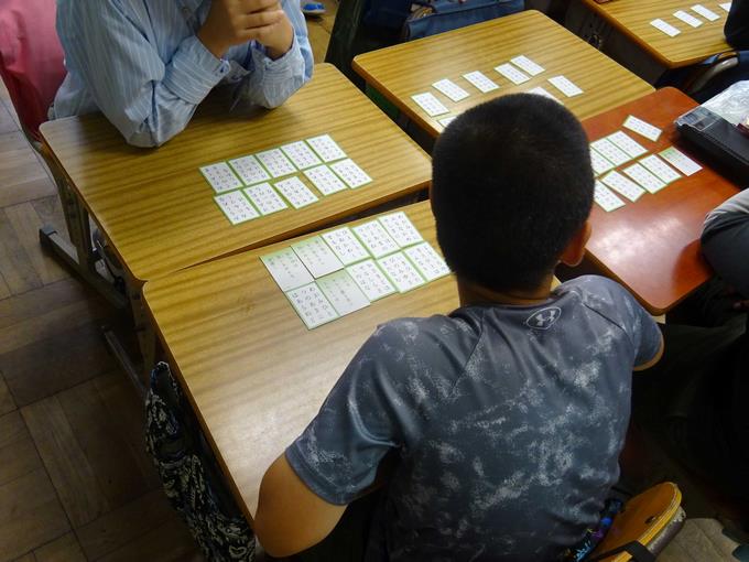 百人一首クラブです。百人一首をして楽しみます。見に行ったときは、百人一首の覚え方講座を行っていました。覚えやすい語呂合わせなどをみんなで楽しんでいました。もちろん札を早く取り合う対戦も行っていました。