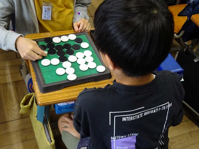 将棋・オセロクラブです。名の通り将棋とオセロをして楽しみます。戦術を工夫しながら、頭を使って対戦を楽しんでいました。