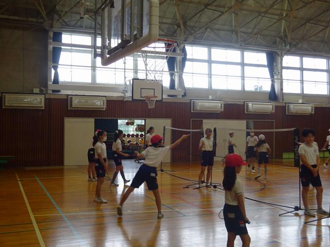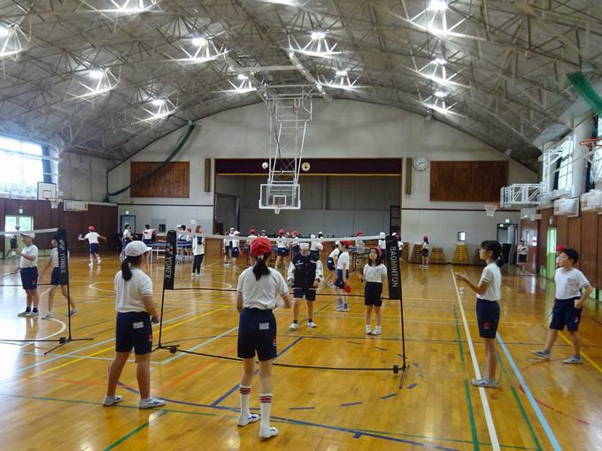 体育館で活動するバドミントンクラブです。ネットをはさんで、ラリーを楽しんだり、得点を競い合ったりして楽しみます。ダブルスでゲームをしていました。ペアと息を合わせるのも楽しいですね。