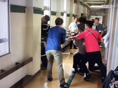 警察署の方が不審者役をやり、教職員は各自の役割分担のもと対応し、児童は教室の出入り口にバリケードを作って教室避難を行いました。