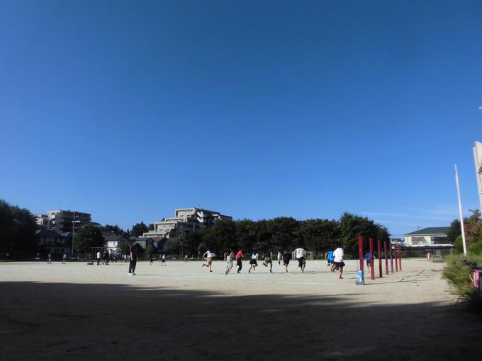 27日土曜日の市民陸上大会に向けて、青空の下、一生懸命練習に取り組んでいます。