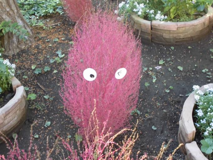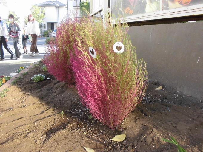 正門前のコキアさんたち、ならにっ子たちを見守ってくれています。環境ボランティアさんたちが、すてきなコキアさんに変身させてくれました。ありがとうございます。