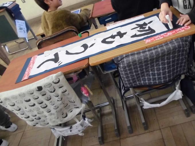 初めての1年生、初めての席書会を行った3年生。どちらの学年もとても上手に書けていました。