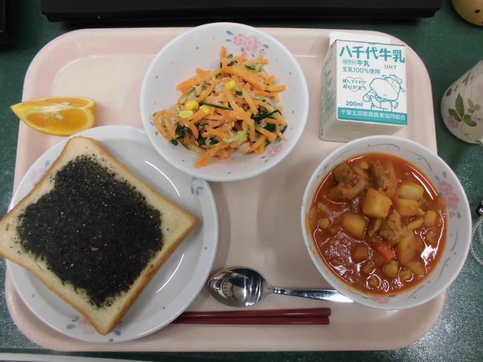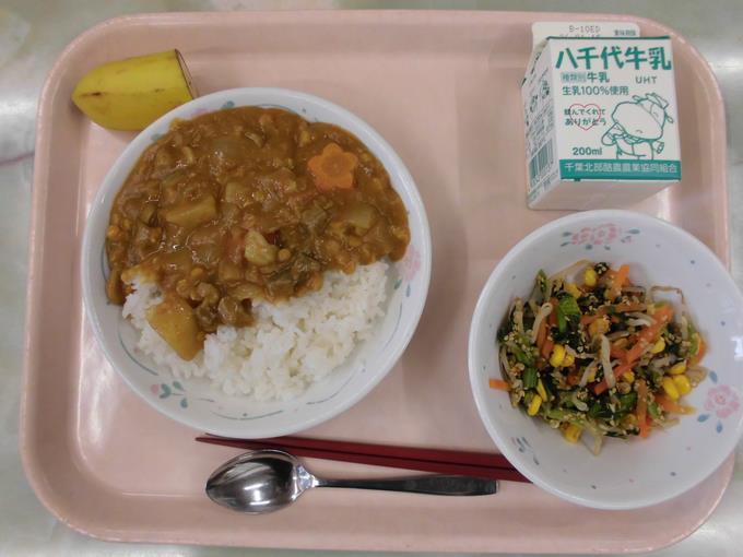 みんな大好きカレーライスです。カレールウは給食室の手作りです。習二小の自慢の味ですね。「ごちそうさまでした!」