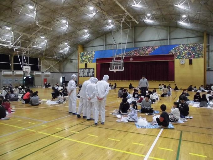 いつもおいしい給食を作ってくださっている調理員方も体育館に来て、うれしそうにお弁当給食を食べている子供たち様子を見学しました。給食後の思いっきりタイムでは、たくさん遊ぶことができ、皆とてもいい笑顔でした。2~5年生の皆さん、お弁当給食を楽しみにしていてください!