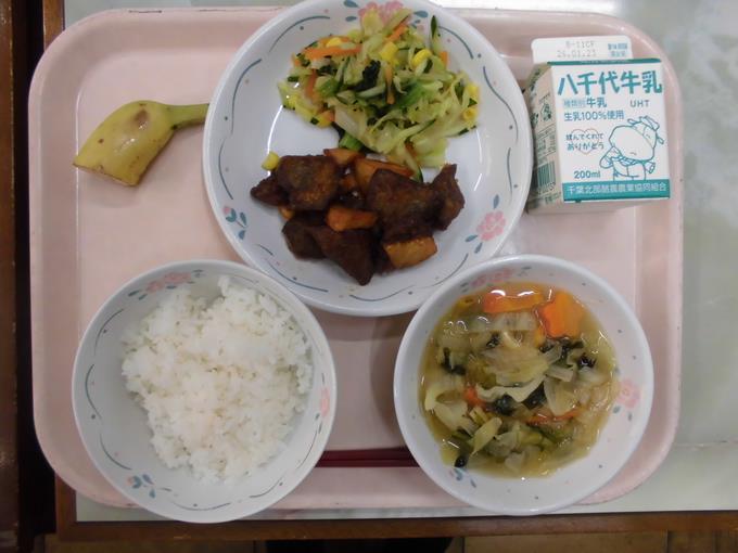 今日のお米は、船橋産の「コシヒカリ」です。よく噛んで食べてみると甘みを感じました。栄養満点レバーのケチャップ和えは、ケチャップの甘みがレバーととても合っていました。「ごちそうさまでした!」