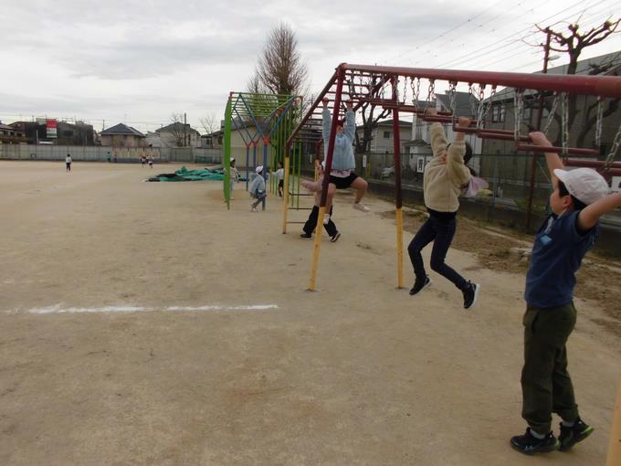 業間休みは、なぜかうんていに行列ができていました。がんばれならにっ子!