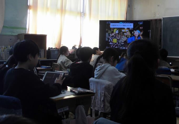 給食中の5年生の教室から、バースティソングが聞こえてきました。