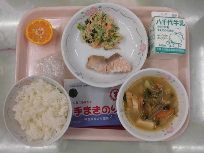 そして、さけの塩焼きです。給食の焼魚は、我が家のグリルで焼くのとは全く違い、しっとりしていて本当においしいです。
