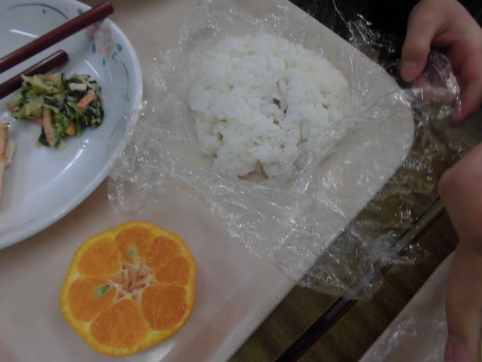 セルフおにぎりでした。1年生も上手におにぎりを作っていました。4~6年生は、お魚の変更がありましたが、楽しそうにおにぎりを作りおいしくいただいていました。「ごちそうさまでした!」