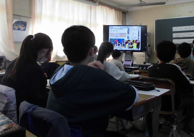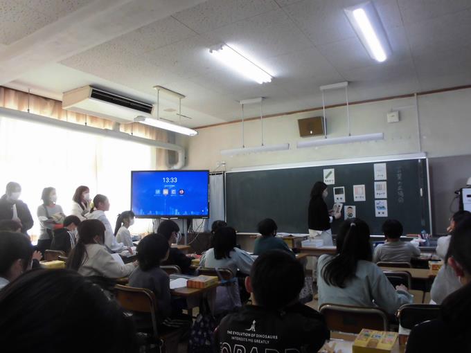 英語の授業はリズムに合わせて楽しく学習していました。