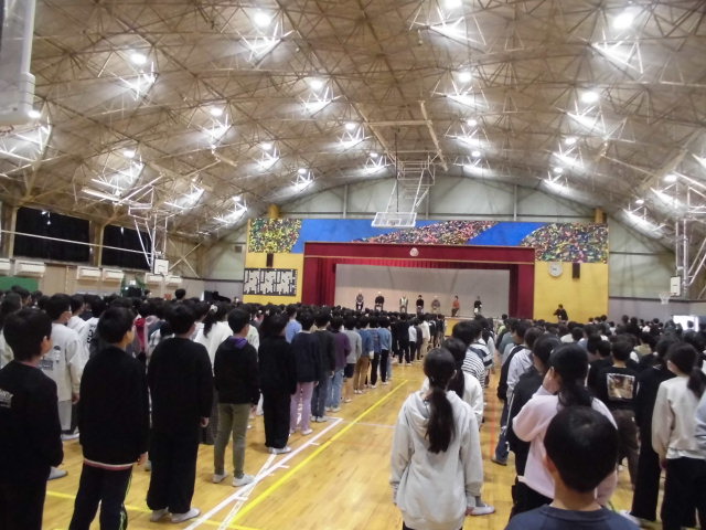 今日の全校朝会では、いつもならにっ子たちの安全な登下校を見守ってくださっているスクールガードのみなさんに1年間のお礼を伝えました。そして「ありがとう」の歌を全校合唱しました。