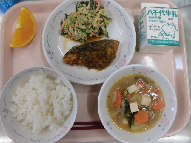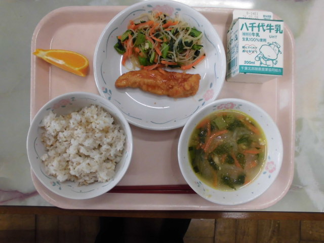 とりの照り焼きは、柔らかいお肉に照り焼きのタレがとてもおいしく、ご飯が進みました。給食室で調理されたお肉とお魚はふっくらと柔らかく、どんなお料理でもおいしいです。出汁がおいしいけんちん汁に、お野菜たっぷりで彩りもきれいな根菜ごまマヨサラダでお腹いっぱいになりました。「ごちそうさまでした!」