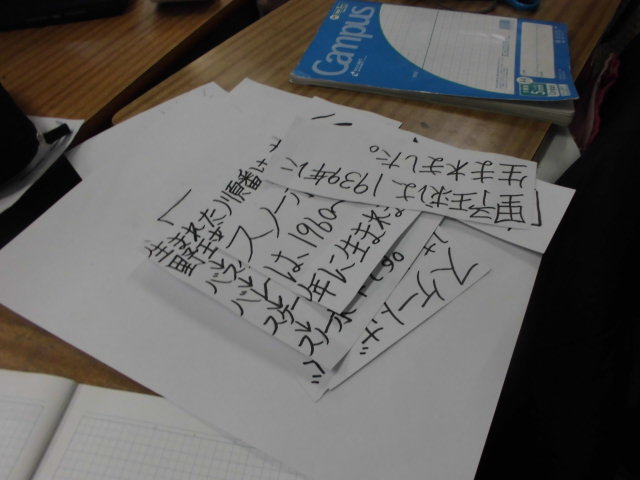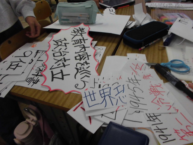 社会科の学習でした。これまで学んできたことを発表するのかと思ったら、授業にチャレンジするそうです。皆の前で授業をするとのこと。皆で教材研究をしているのかな。すばらしい教具、掲示物です。授業日が楽しみですね。