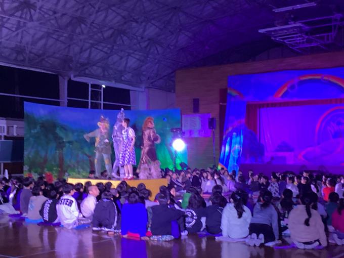 16日に、芸術鑑賞教室が行われ、夢団の皆さんによる「オズの魔法使い」を鑑賞しました。
