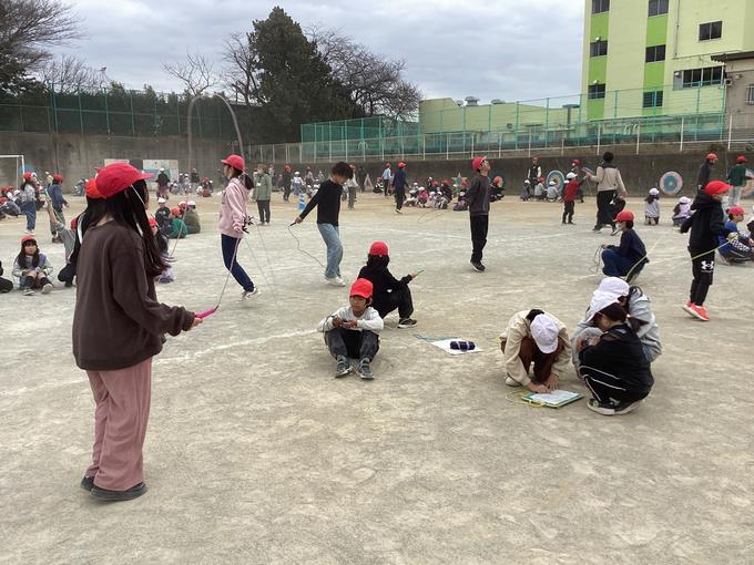 1・6年生、2・5年生、3・6年生のなかよしグループに分かれ、12月から縄跳びの練習に取り組みました。
