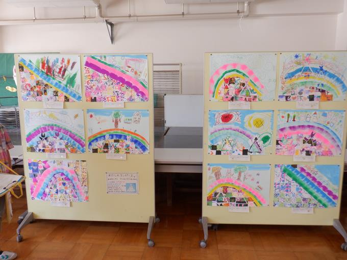 7月8日月曜日から校内夢アート展を開催しております。どの学年も想像力豊かな力作が並び、校内を温かい雰囲気にしています。子供らしい発想と躍動感のある作品に感心します。各学級、図工の鑑賞の時間を活用し、他学年の作品を見て、お互いの良さを認め合っていました。個人面談で来校した際には、子供たちの素敵な作品を是非ご覧ください。