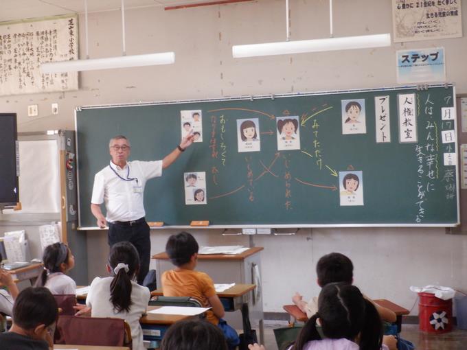 7月17日水曜日、船橋人権擁護委員2名の方々を講師にお招きし、3年生2クラスで「人権教室」の授業を実施しました。映像教材を活用し、子供たちは自分がとるべき行動について考えました。積極的に発言する様子も見られました。山本先生、山口先生、ありがとうございました。