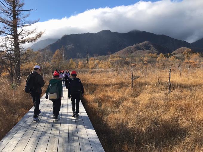 昼食後は、戦場ヶ原ハイキングを行いました。壮大な景色を見ながら友達と歩く経験は良い思い出になったと思います。迫力満点の湯滝にも圧倒されていました。