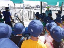 漁港では、船橋でよくとれる「ホンビノス貝」を見せて頂いたり、
