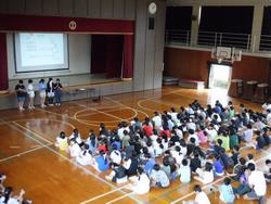 2年生は1年生に学校を案内する計画を立てました。当日は1年生をリードし、説明をつけながら、校内を案内していました。