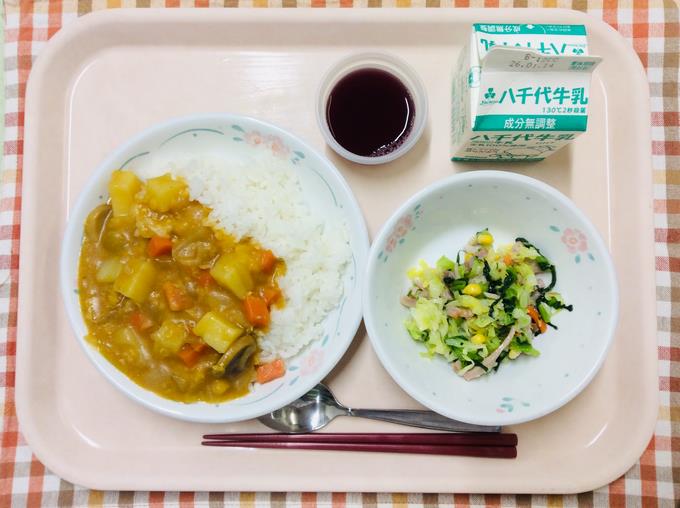 ポークカレーライス、コールスローサラダ、ぶどうゼリー