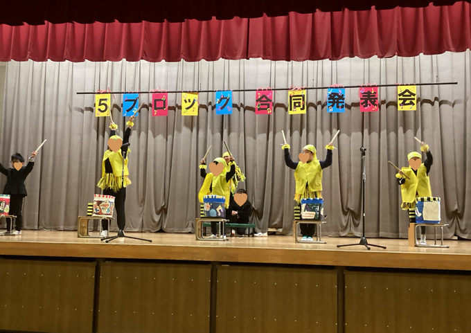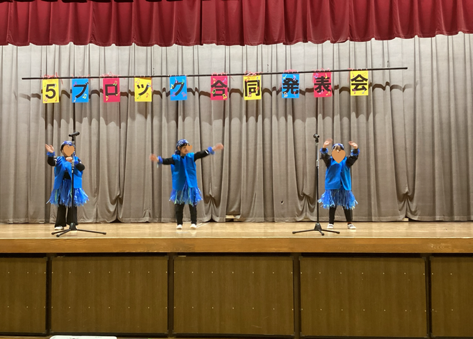 4組は、5ブロック合同発表会に参加しました。5ブロックの小・中学校が集まるのは、6月の交流会以来7ヶ月ぶりでした。今回は船橋特別支援学校の6年生も参加してくれました。4組は、「クレヨンたちの大喧嘩?」という劇を発表しました。カラフルなとても可愛い衣装に身を包み、とても上手に演技をすることができました。また、他校、特に中学生の発表に「すごーい」と声を上げていました。小学生だけでなく中学生の発表を見ることは、子供たちの成長のために大きな刺激になることでしょう。