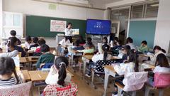 2年生は、各クラス自己紹介でした。カードを作成しているクラスもあれば、カードの作成は終わり発表しているクラスもありました。クイズを交えながら自己紹介をし、子供たちは楽しそうにクイズに答えていました。