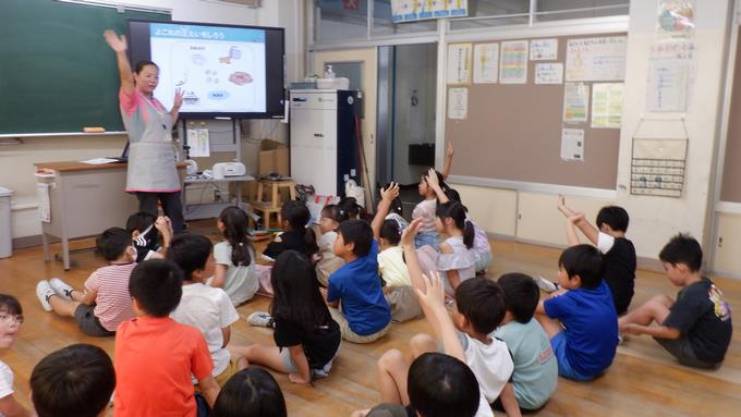 明日から給食も始まります。明日の給食をすでに楽しみにしている子もいました。まだまだ厳しい暑さが続きそうです。早寝、早起き、朝ご飯を合い言葉に、熱中症予防に気をつけながら過ごしたいと思います。引き続きご家庭のご協力をお願いします。