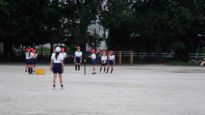 昨夜の雨で、今日は大変涼しく過ごしやすい日となりました。4年生は、久しぶりに校庭での体育学習を楽しんでいました。