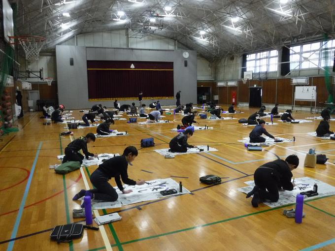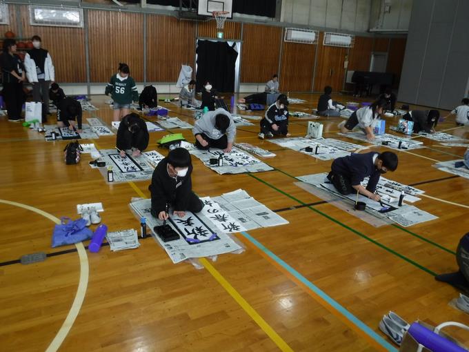新しい年が明け、1月7日、8日の2日間にわたり、体育館にて「席書会」を行いました。前回の練習会に引き続き、外部から講師の先生をお招きしてご指導いただきました。