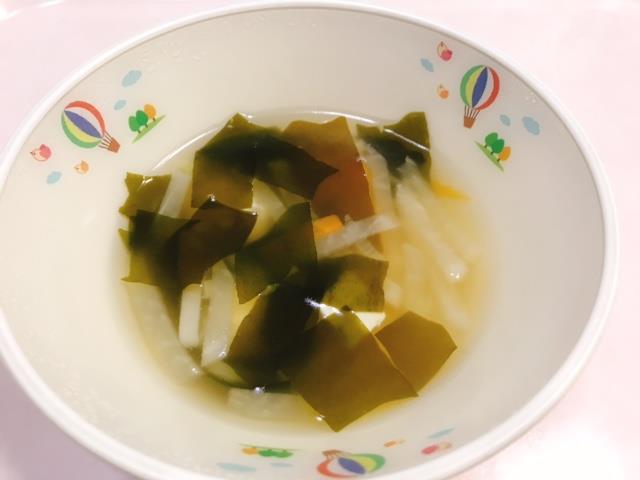 ☆今日の献立…ごはん、いかの黒酢揚げ、茎わかめのサラダ、豚汁、オレンジ、牛乳