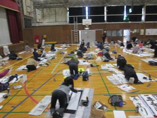 3年生も5年生もよく集中して書き初めに取り組みました。氏名まで、ていねいに書くことができていて感心しました。