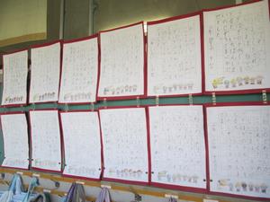 一文字一文字、心をこめて書きました。力作ぞろいです。授業参観などで来校された際、是非、お子さんの作品をご覧ください。