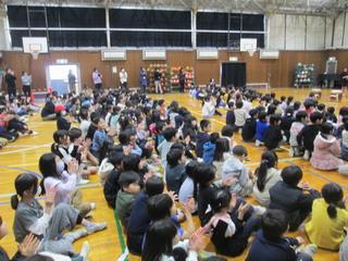 のびのび休みの時間に行った、和太鼓クラブ発表会の様子です。太鼓の力強い響きが、聴く者の体全体に伝わりました。演奏する子供たちの真剣な表情、演奏後の満足そうな笑顔がすばらしいと思いました。トラックで太鼓を学校へ運び、優しく分かりやすく教えてくださった船橋芝六太鼓の皆様、ありがとうございました。