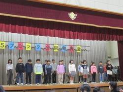 4年生の子供たちは、高根台中学校で行われた「5ブロック合同発表会」に参加しました。本日集まったのは、高根台中学校、大穴中学校、高根台第二小学校、高根台第三小学校、大穴小学校、高郷小学校です。4年生は、リコーダー「もののけ姫」、合唱「あした笑顔になあれ」、踊り「ソーラン節」を発表しました。一生懸命に演奏したり演技したりする姿がすばらしいと思いました。発表をみる態度、行き帰りの歩き方もしっかりできていて感心しました。他の学校の子供たちと交流できたことは、とてもよい経験です。