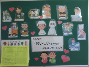 「今日の給食には6つの大豆が登場します。大豆にはたんぱく質がたくさん含まれ、畑の肉と呼ばれています。」