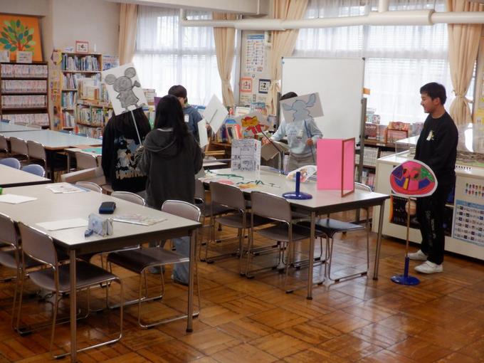 図書委員会では、低学年向けに楽しい読み聞かせを行うため、ペープサートの練習をしました。子どもたちは声の大きさや表情の工夫を考えながら、楽しそうに取り組んでいました。