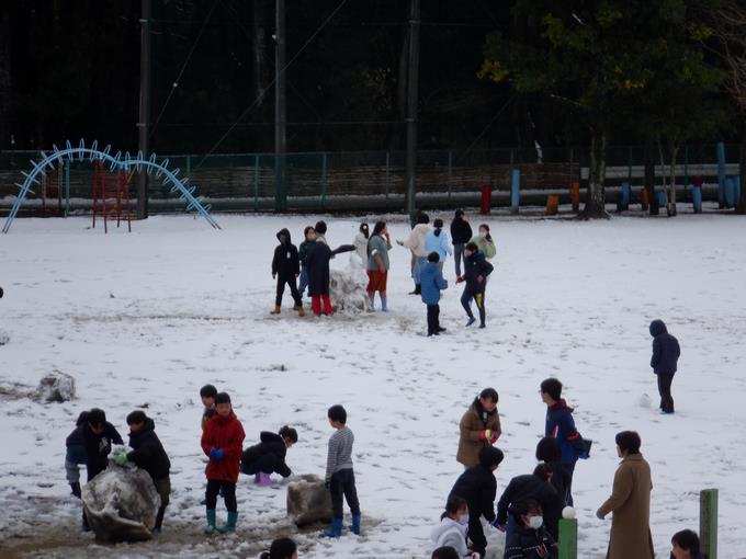 子供たちは、新雪の中、雪だるまなどを作って遊びました。とても楽しかったようです。