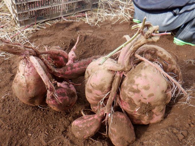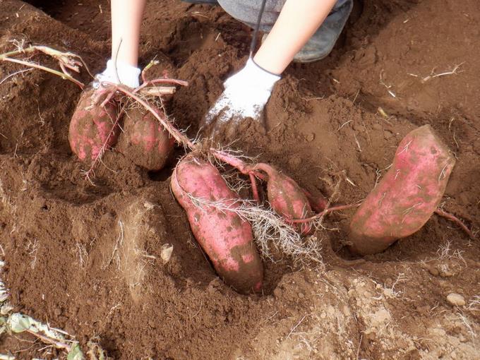 最後に、サツマイモの状態を見るために実際に掘ってみました。