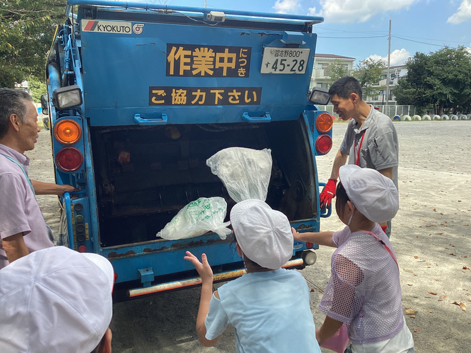 9月3日(水曜日)の3校時、船橋市クリーン推進課の方々にご来校いただき、ごみ収集体験を行いました。
