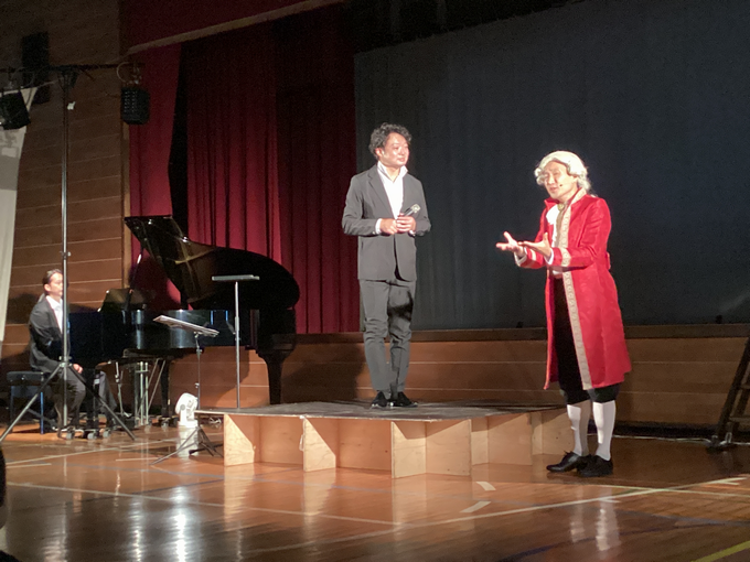 内容は、「モーツァルティアーデ」ということで、八木が谷小にモーツァルトが出現!