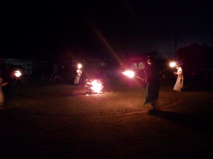 キャンプファイヤーでは、各クラスが「協同」「友愛」「規律」の誓いを立て、みんなで火を囲みながら、ゲームやダンスを行いました。