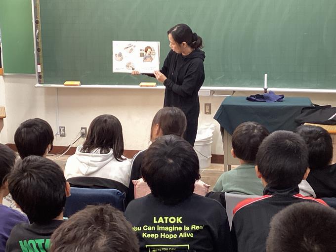 27日(月曜日)の4校時に、松の実おはなし会による読み聞かせが行われました。