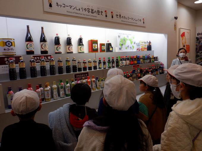 まず、もの知りしょうゆ館では、しょうゆ作りの工程を見学したり、しょうゆづくり体験をさせていただきました。