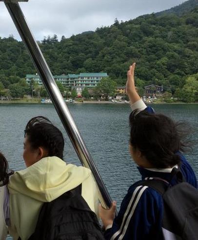 昼食の後は、いろは坂を上って、奥日光へ。標高が上がり、眼下に美しい景色が広がるたびに、子供ちから感嘆の声が上がりました。中禅寺湖の遊覧船では、デッキに出て、風を感じている子が多かったです。日光の山と中禅寺湖のコントラストが美しかったです。