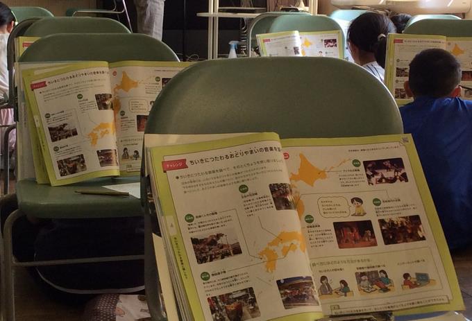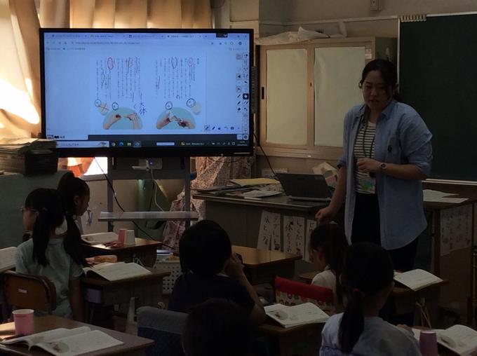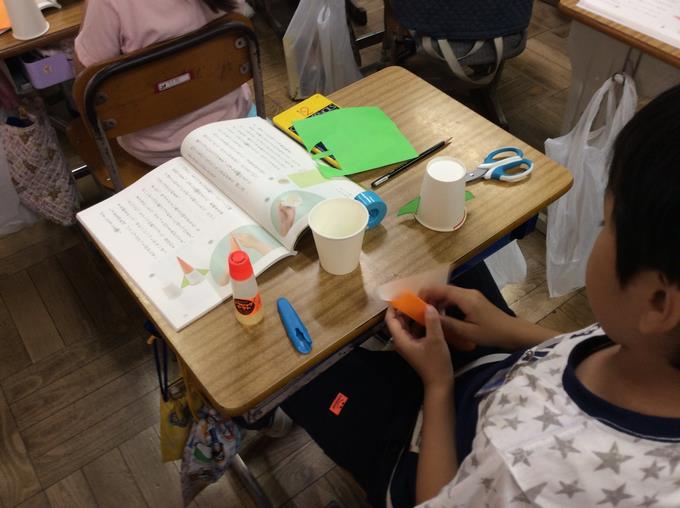 2年生の教室では、9日に行う研究授業に向けて、子供たちが教科書を必死に読んでいました。教科書に書いてあることを元にしておもちゃ作りをするそうです。