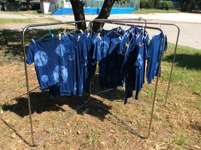 ひまわり学級では、Tシャツを藍染めする準備をしていました。染めている時間に立ち会えませんでしたが、とても素敵なTシャツが出来上がりました。
